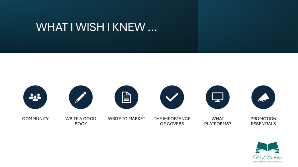 I’ve grouped the ‘what I wish I knew’ into six areas. Note that four of the six are to do with the book itself, because if you don’t get that right there’s no point doing the rest – a poorly written and edited book is unlikely to sell beyond your most loyal friends and your mum.